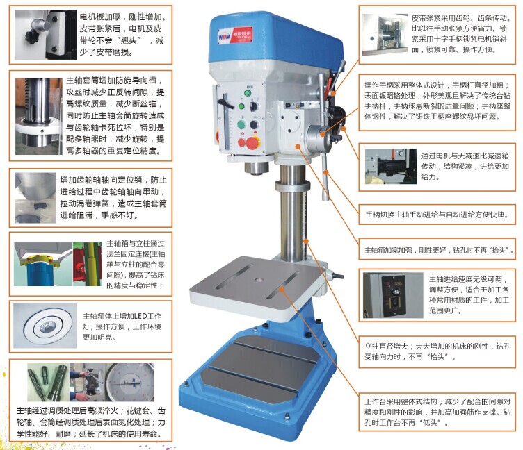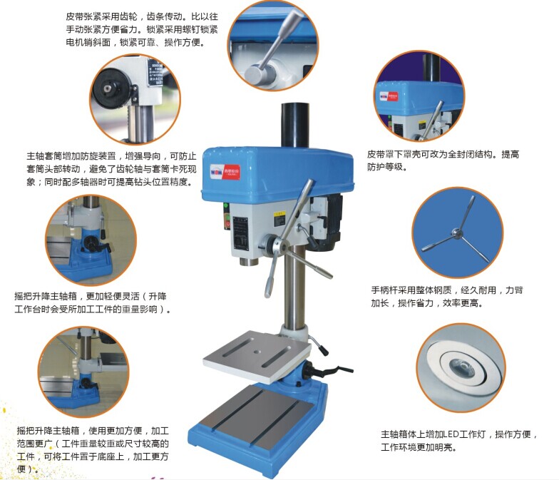 主轴进给速度无级可调,调整方便,适合于加工各种常用材质的工件,加工范围更广