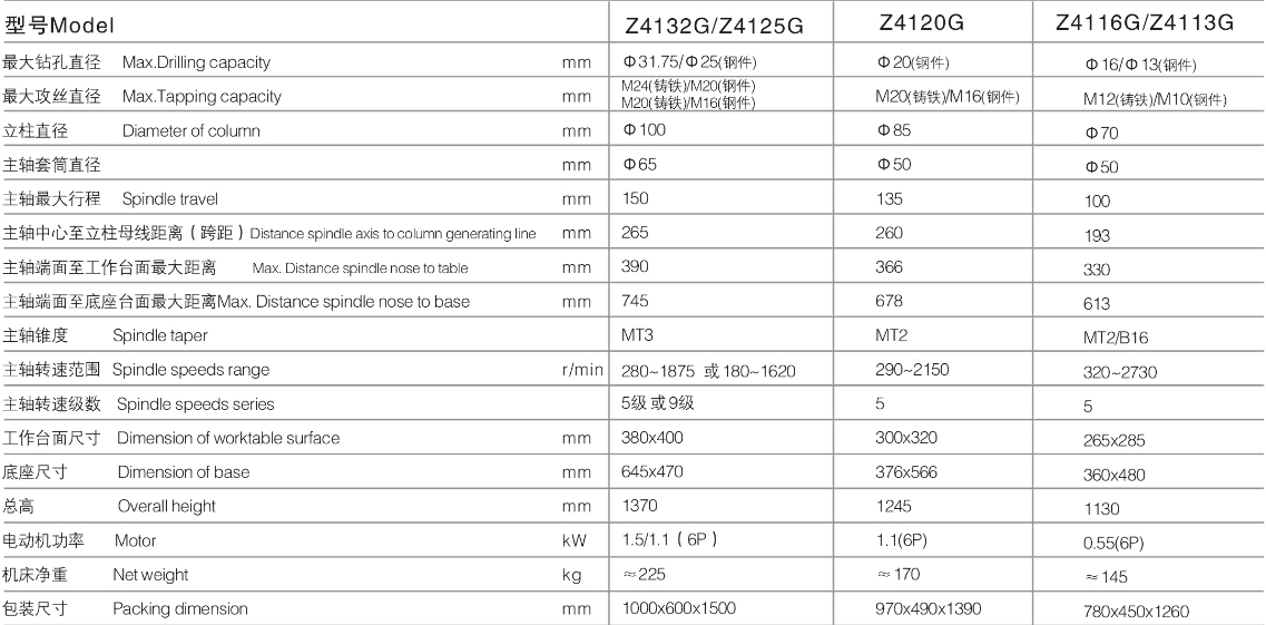 Z4132G强力钻床技术参数: